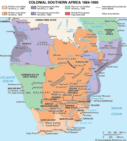 The two maps provided show the colonial divisions of Southern Africa (1884-1905) and the ethnic distributions in pre-colonial times. The Oorlam’s migration from the Cape Colony to South West Africa (Namibia) reflects their journey through shifting political and geographical landscapes, navigating between German, British, and Portuguese-controlled territories.